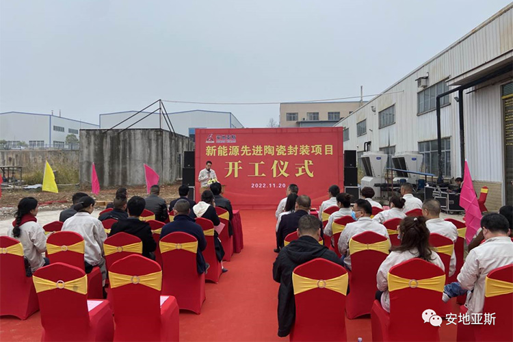 2022年11月20日早上,萬里無云,溫暖的陽光灑滿大地,公司新能源先進(jìn)陶瓷封裝項目工地上彩旗飄飄、火紅的氣球隨風(fēng)飄揚。主席臺上“新能源先進(jìn)陶瓷封裝項目開工儀式”幾個大字分外醒目,今天是安地人高興的日子,我們將在這里舉行新廠房建設(shè)開工儀式。